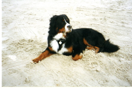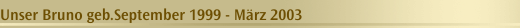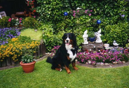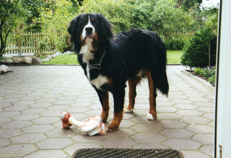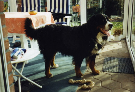 Bruno ist nur 3 1/2 Jahre alt geworden. Er war ein sehr gehorsamer Berner. Er hinterläßt eine Lücke in unserem Leben. Die Entscheidung ist uns nicht leicht gefallen - seine Signale waren aber sehr deutlich -deshalb haben wir ihn "über die Brücke gehen lassen" !