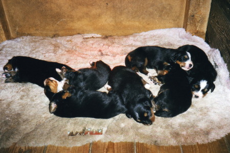 Das Nuckeln am Daumen hat an diesem Tag den Ausschlag für Bruno gegeben und mit seinen 3 Wochen hat er unser Herz erobert (2. von rechts).
