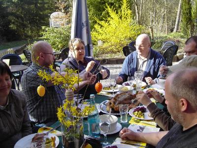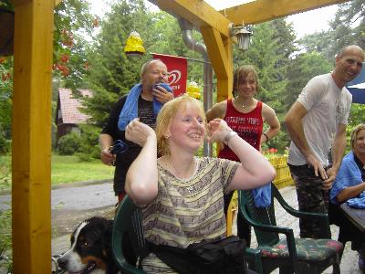 Unser diesjähriges "Weihnachts-Abschlußessen" April 2011: "Osterente" - Unsere nachträgliche "Weihnachtsente" war sehr, sehr lecker!! Das Wetter hat es diesmal besonders gut mit uns gemeint. Berner hat Zweibeiner hatten viel Spaß. April 2011: Unser Nachtisch war nicht nur optisch eine Augenweide. Wir haben es genießen können. Dank des schönen Wetter sind alle noch lange geblieben und wir haben viel erzählt!! BRUNCHEN 2010: Diesmal hatten wir Glück mit dem Wetter. Unsere "Bären" haben geplanscht in jedem See und wir haben anschließend geschlemmt und wurden wieder herzlich verwöhnt. Weihnachtsfeier 2009: Zu unserer 5. Weihnachtsfeier hat sich unsere Heidehexe etwas ganz besonderes ausgedacht. Glühwein, Kaffee und alkoholfreie Getränke mit Lebkuchen und Keksen. Eine tolle Idee als kleine Pause, sogar Petrus hat mitgespielt. Wie angekündigt mußten die Ente daran glauben. Es gab reichlich und wie immer unheimlich lecker in einer tollen Atmosphäre - toll dekoriert. Wir hatten viel Spaß. Anschließend haben wir gewichtelt. Alle haben eine tolle Überraschung erhalten. Unsere erste gemeinsame Feier - Pfingsten 2006 : Wandern und anschließend grillen. Unsere Berner haben alle brav gewartet, bis wir fertig waren - aber dann gab's Leckerchen, aber natürlich nichts vom Grill !!!!