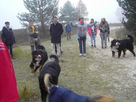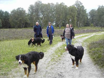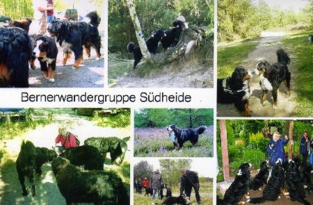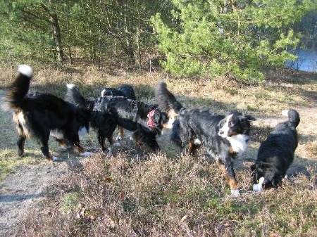 Im November 2004 haben wir in der Südheide eine Wandergruppe für Berner gegründet. Mit 4 Rüden hat es angefangen (Angelo - Arthur- Eddie - Robert) Wir nannten sie die "Boy-Group". Mittlerweile sind es viele Berner Rüden und Hündinnen im Alter von 6 Monaten und 10 Jahren. Natürlich sind nicht jedesmal alle dabei. Durch private und berufliche Einbindung sind es im Durchschnitt zwischen 10 - 12 Berner. .